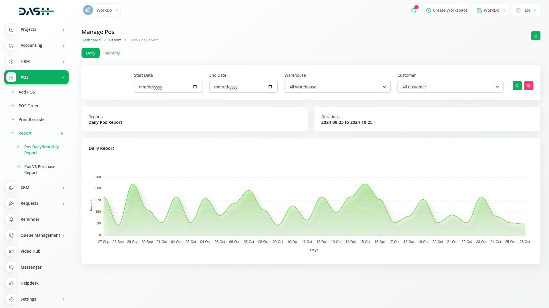 Welcome to the POS Module in Dash SaaS, your ultimate solution for streamlined sales management. Our platform offers a user-friendly dashboard where you can easily navigate through your sales activities. At the heart of the dashboard is a dynamic chart representing your sales reports, providing valuable insights into your business is performance. Whether you are a small retail store or a bustling restaurant, our POS Module empowers you to efficiently manage your sales process from start to finish.